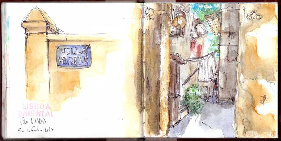 | Vila Vila Moreno, Lisboa Oriental, esferográfica preta e aguarela, 24 set. 2017. |