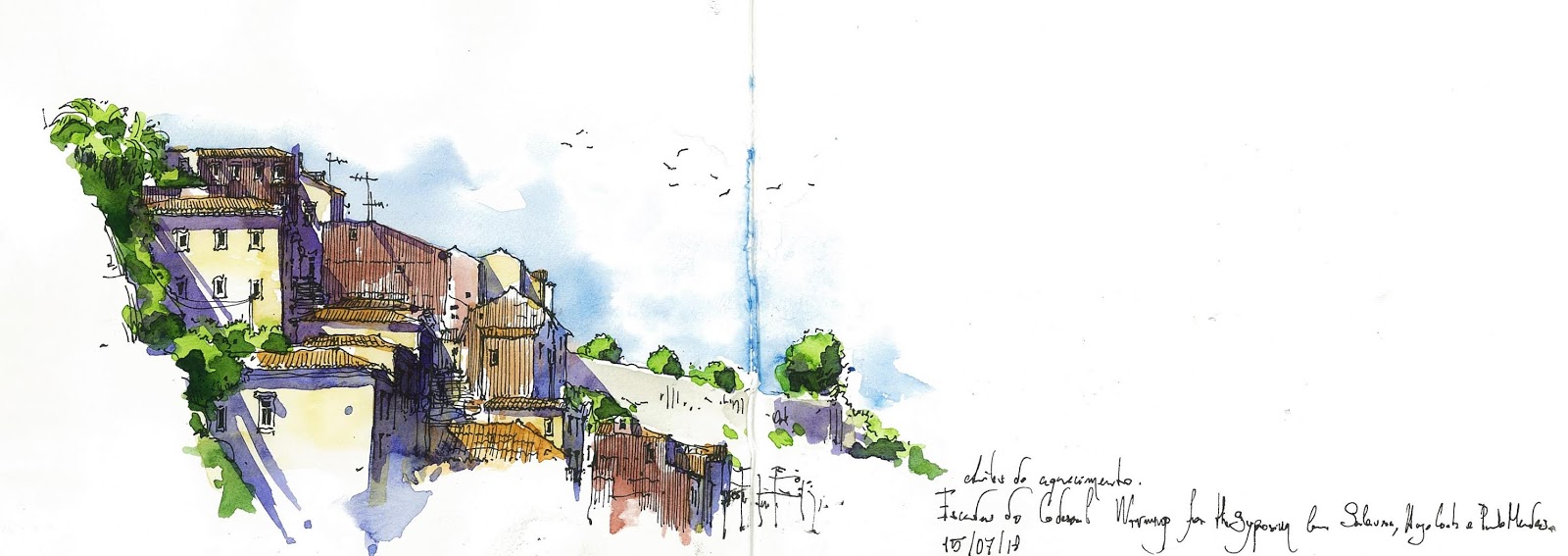 Adaptando parte do título de um dos workshops que fiz, o da Simo Capecchi, aqui fica um post em forma de reportagem, com os resultados da minha participação, nesta primeira experiência pessoal num Symposium dos Urban Sketchers. Entre desenhos inacabados, uma apresentação skit sketch,