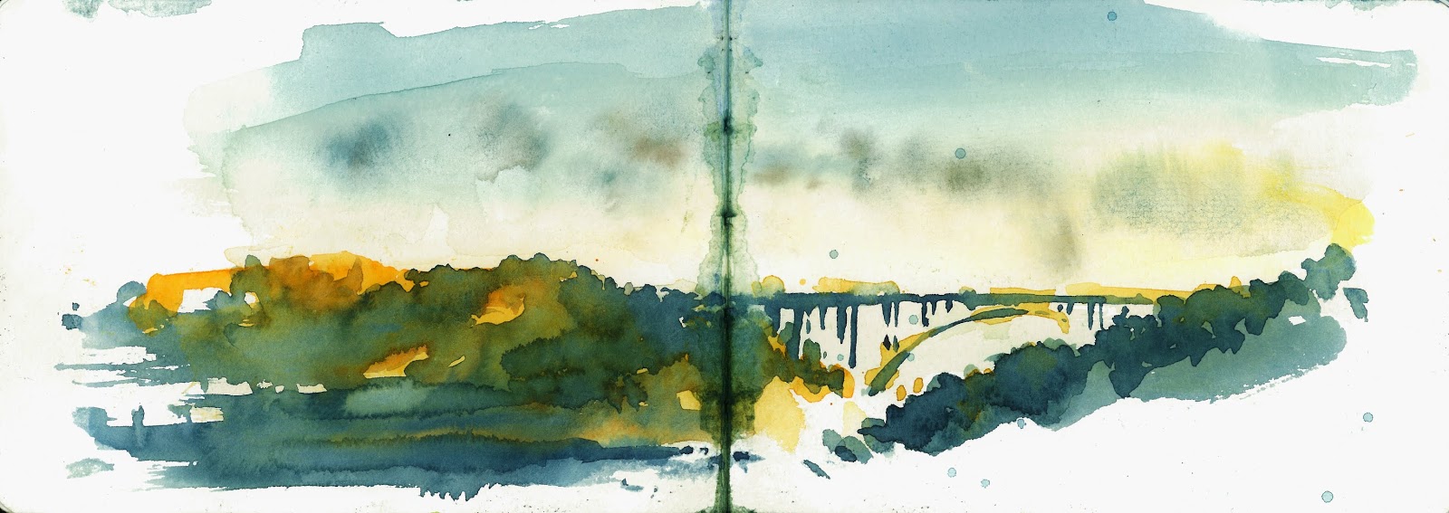| Aguarela de 7 min da ponte D. Luís numa manha de nevoeiro |