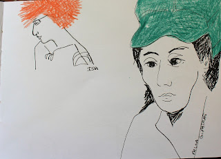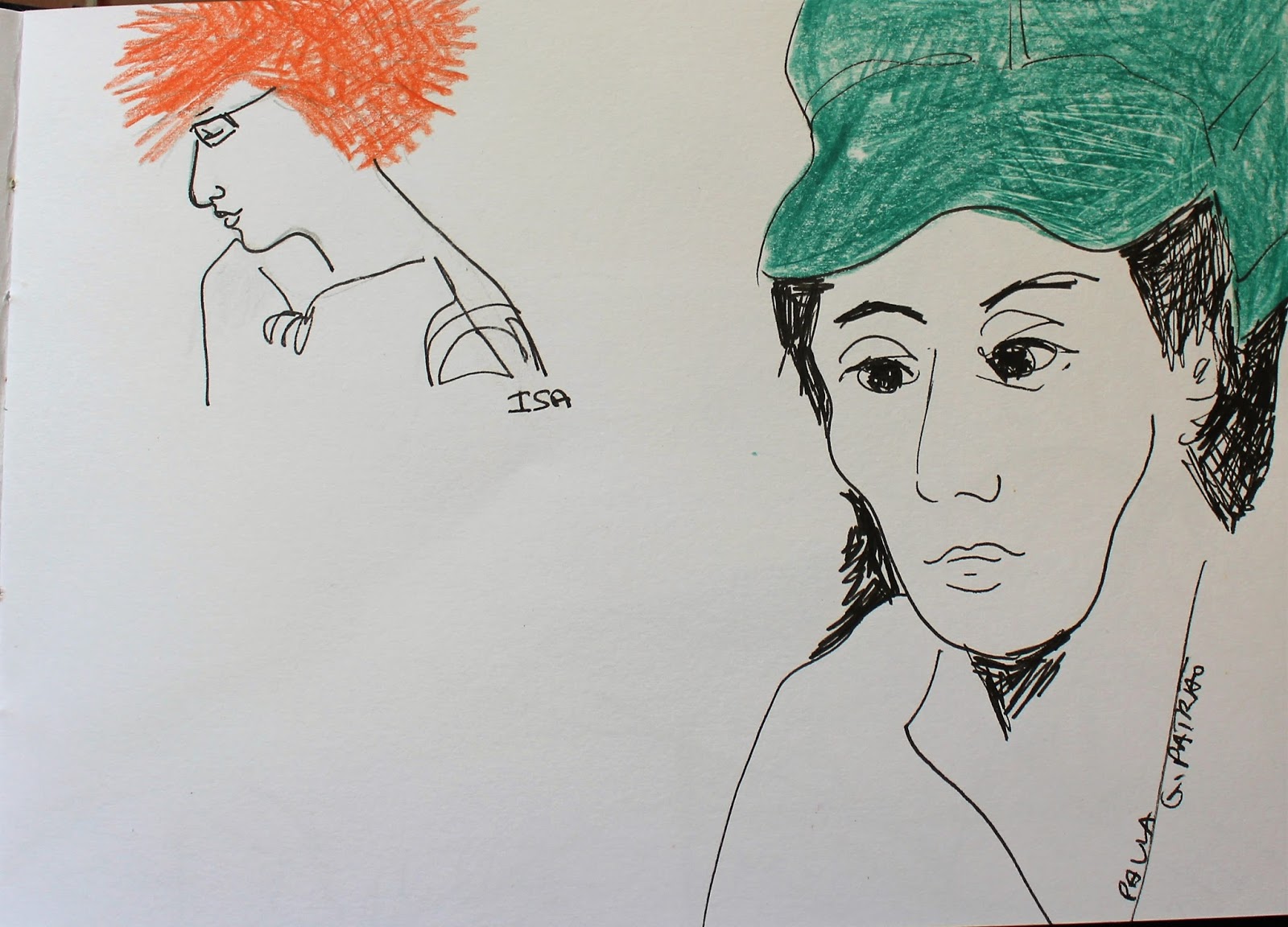 Mas estávamos lá para desenhar e assim foi. Fui até a Igreja da Graça que me tinha despertado a atenção da última vez que lá tive e não pude desenhar. Desta feita não escapou. Entre sol intermitente e chuva, lá consegui fazer o desenho de uma complicada mas muito bonita igreja Gótica, acompanhado pelo Pedro Álvares Cabral e pelo Bruno que o "caçou"