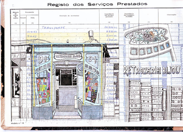 O momento desta dupla página e toda esta tarde tão bem passada são o que de melhor tem a comunidade de Urban Sketchers Portugueses: as pessoas. Desenhar é um veículo para atingir um fim com uma estranha dualidade. Por um lado, é desaparecer para dentro de mim numa partilha única de silêncios agradavelmente estranha. Por outro, é divertir-me, virando-me para fora num encontro colectivo de partilha com sorrisos e boa disposição.