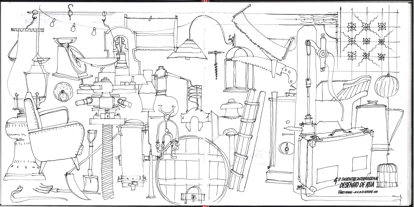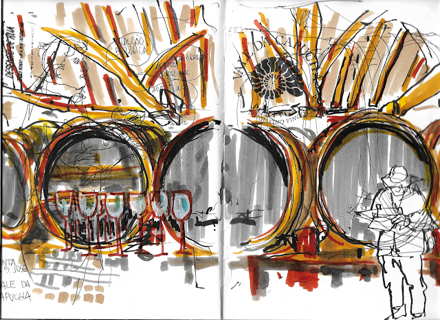 Neste 4º Encontro, muito bem organizado pelo André e Equipa, guardei uma página dupla para desenhar peças soltas das quintas e lugares que visitámos.