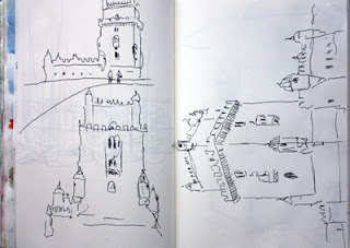 Como não sei se vou poder responder a este desafio, ficam já aqui dois desenhos que fiz relativos ao nosso património. No primeiro a Sé do Porto, no segundo a bela da Torre de Belém.