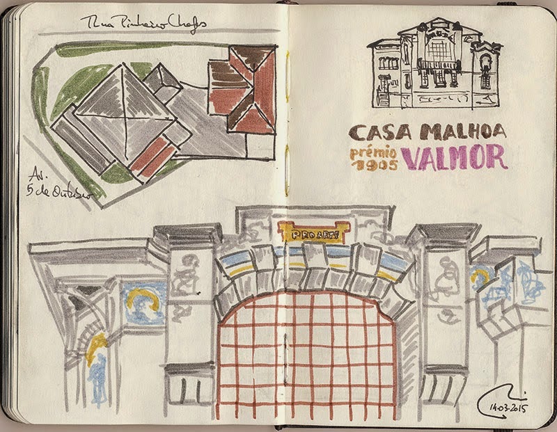 Como cheguei um pouco cedo, aproveitei para fazer um desenho do edifício. |