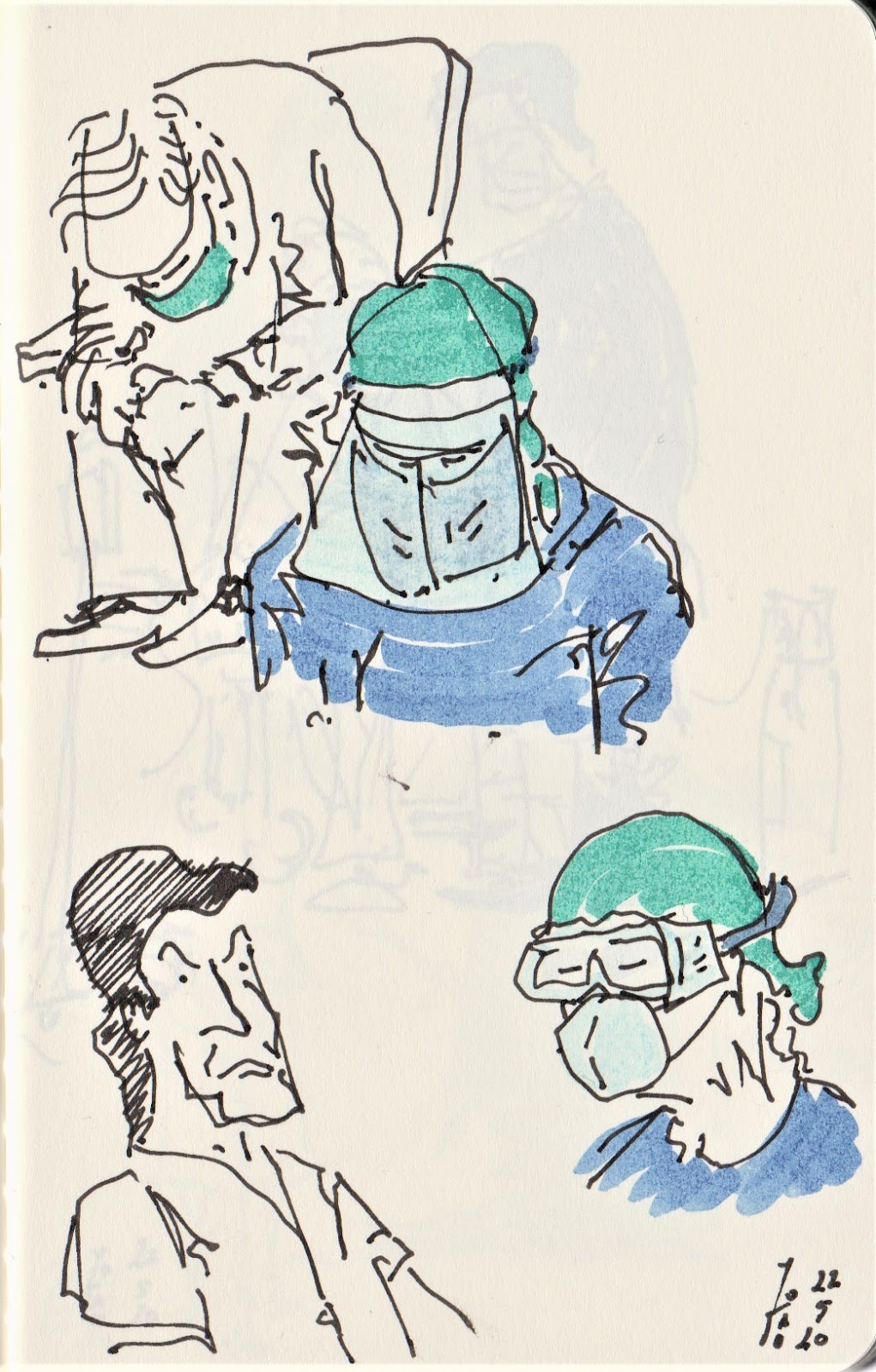 Fui aos correios, e depois sentei-me num canteiro do jardim do largo da igreja do Monte Abraão, olhando as senhoras africanas sentadas nos bancos a conversar e os miúdos a andar de bicicleta. Acho que em todo o jardim a única pessoa que tinha máscara era a senhora no banco à direita.